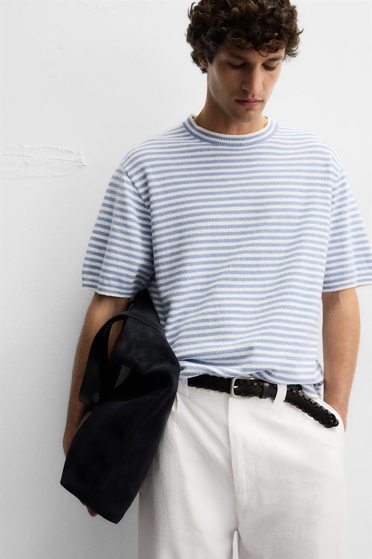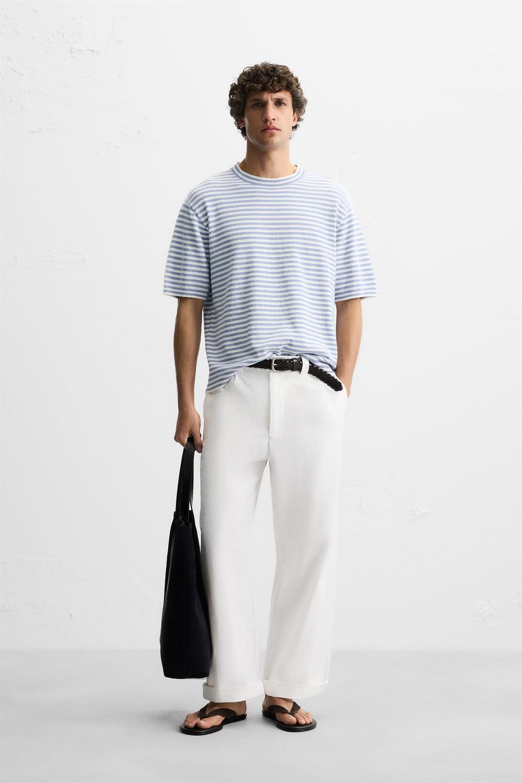 Camiseta regular fit de punto tejida en hilatura con textura toalla. Cuello redondo y manga corta.