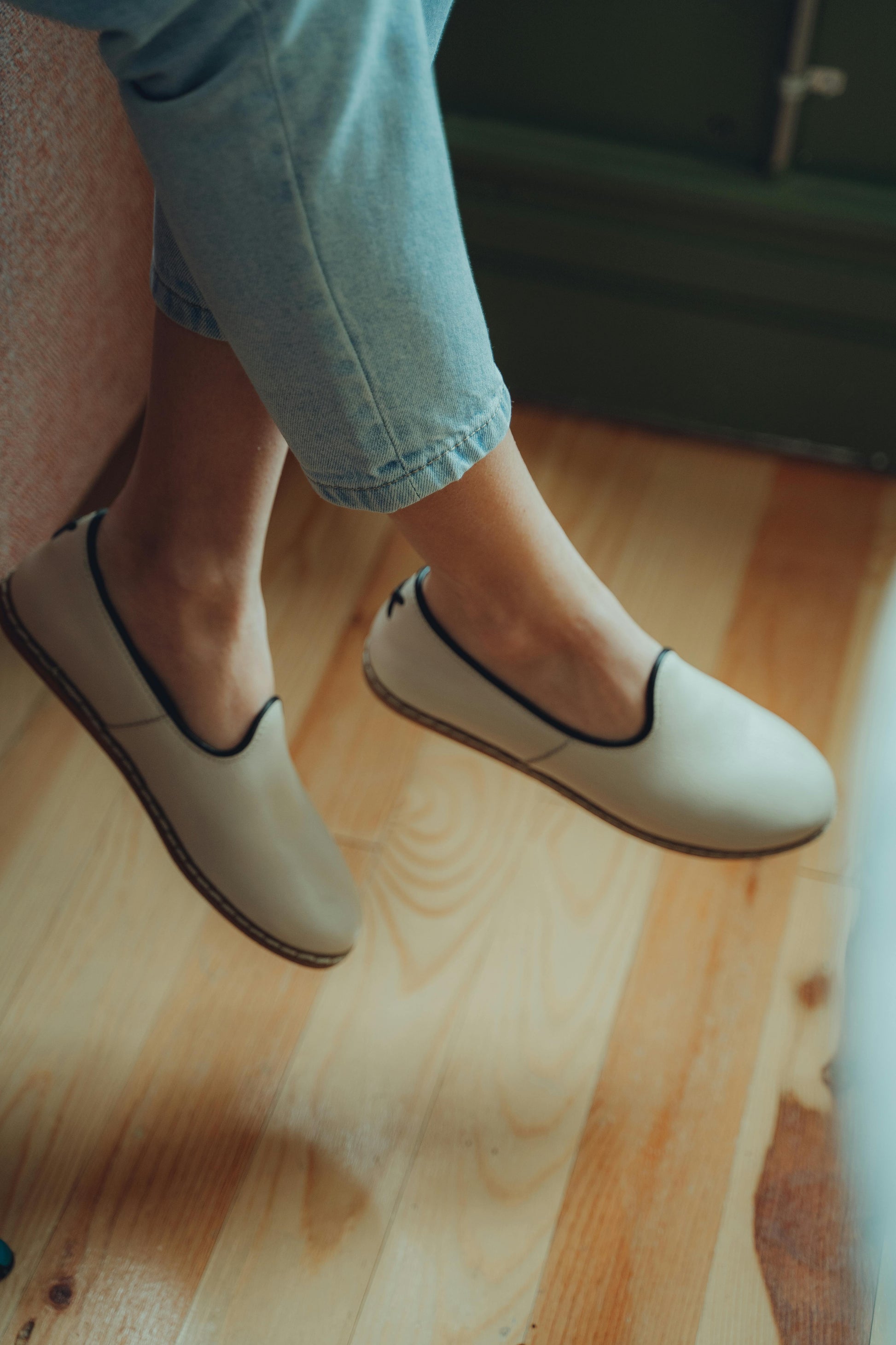 Un par de flats esenciales que combinan simplicidad y confort. Con un diseño minimalista en un versátil tono blanco, estos zapatos ligeros presentan un borde oscuro que resalta su forma. Ideales para el uso diario, son perfectos para un estilo, que prioriza la comodidad y la elegancia sin esfuerzo.